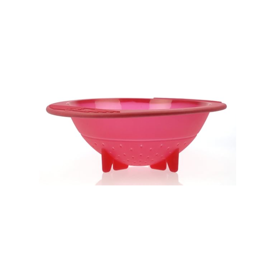 El colador se pliega fácilmente, ocupando un mínimo espacio de almacenamiento cuando no está en uso. Su construcción de silicona de alta calidad no solo garantiza durabilidad, sino que también facilita la limpieza, ya que es resistente al calor y apto para lavavajillas.