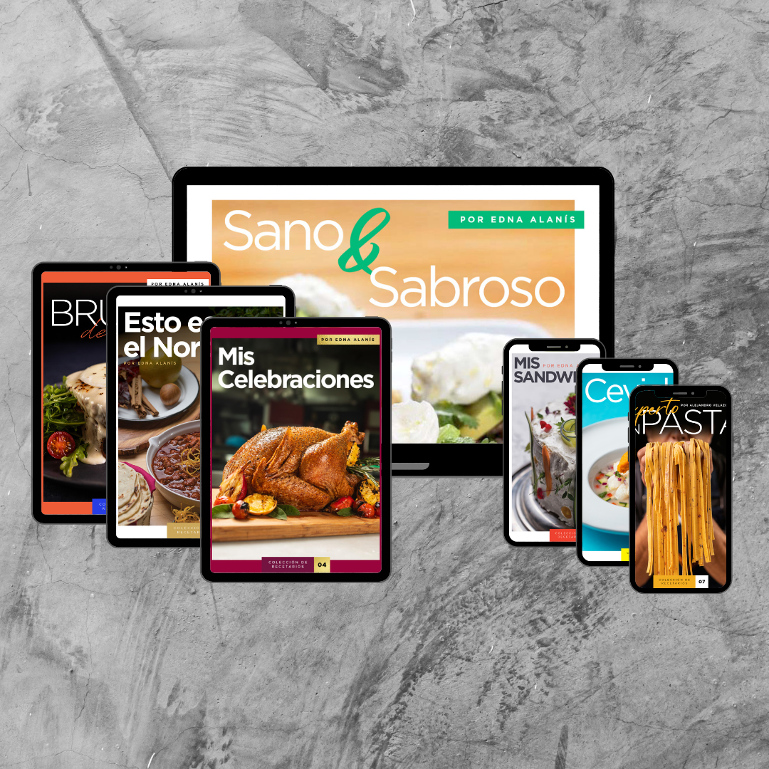 Esta colección incluye los 7 recetarios digitales de Edna Alanis: