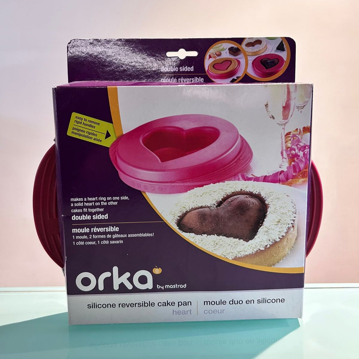 Material de silicón, es reversible, puedes preparar tu pastel con un corazón al centro y anillo alrededor o bien todo el pastel siendo un corazón, tiene agarraderas rígidas a os lados, resiste hasta 480oF, funciona para horno convencional, microondas, congelador y lavavajillas